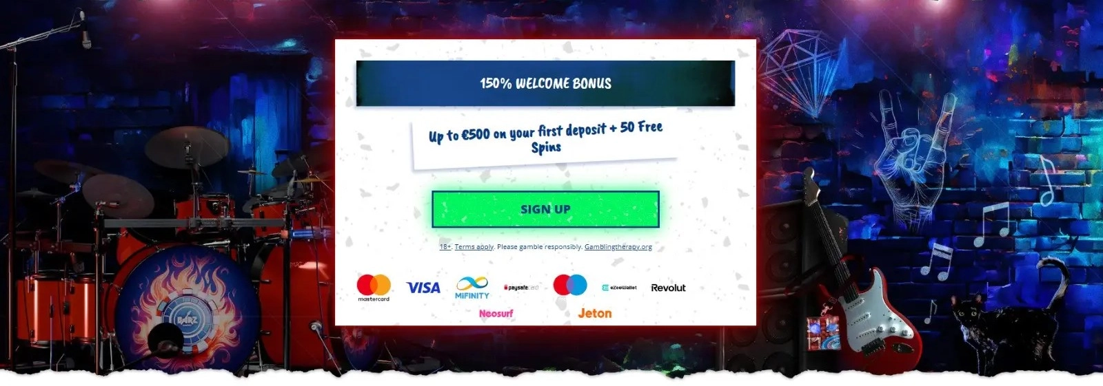 Barz Casino lockar nya spelare med ett attraktivt välkomstpaket som inkluderar både insättningsbonusar och free spins. Erbjudandet är uppdelat över flera insättningar, vilket ger spelarna en chans att maximera sin startbudget.